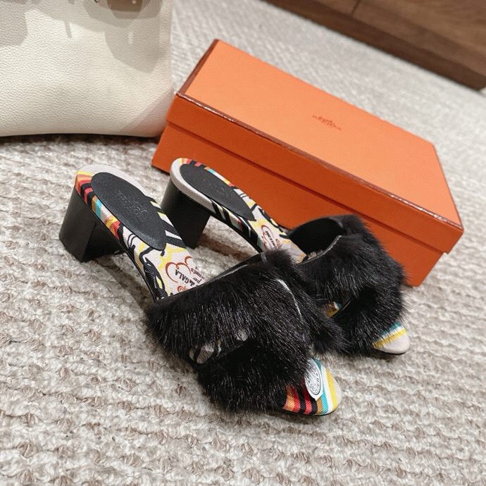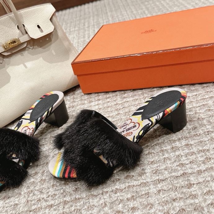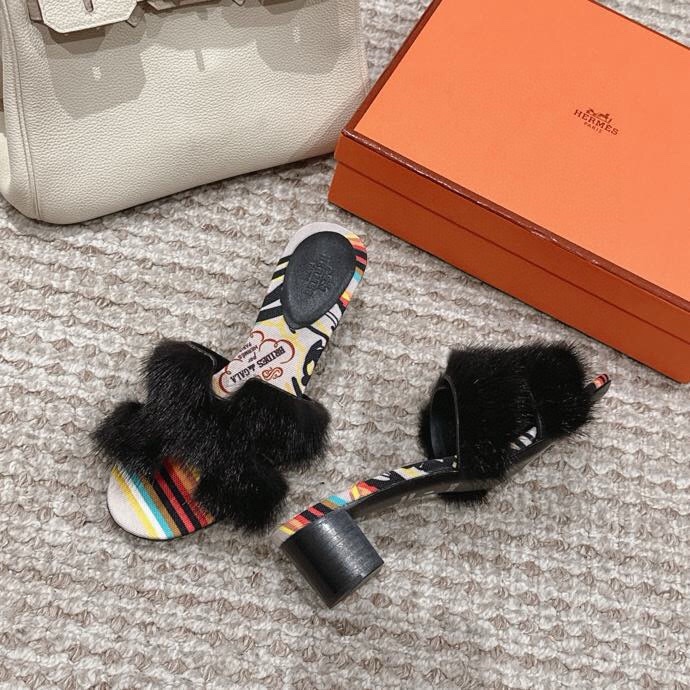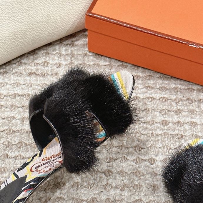 Hermès Oran Fur Sandals
