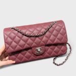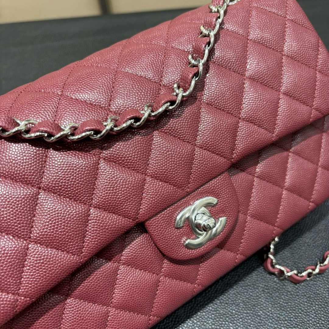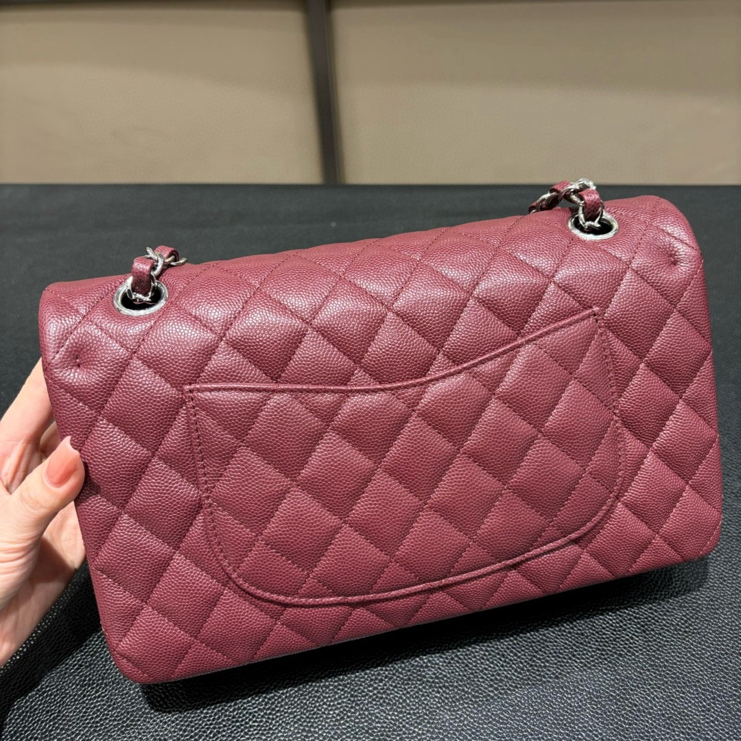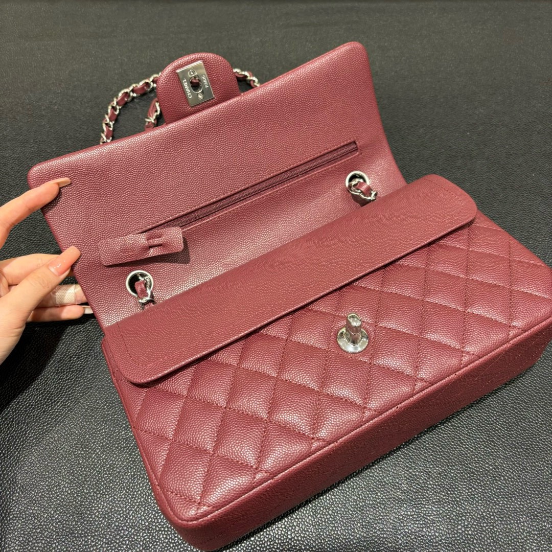 Chanel Classic Bag Silver Buckle Wine Red Cowhide 25cm