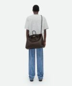 Top handle bag in supple Intrecciato leather with signature knot detail and sliding cross-body strap.