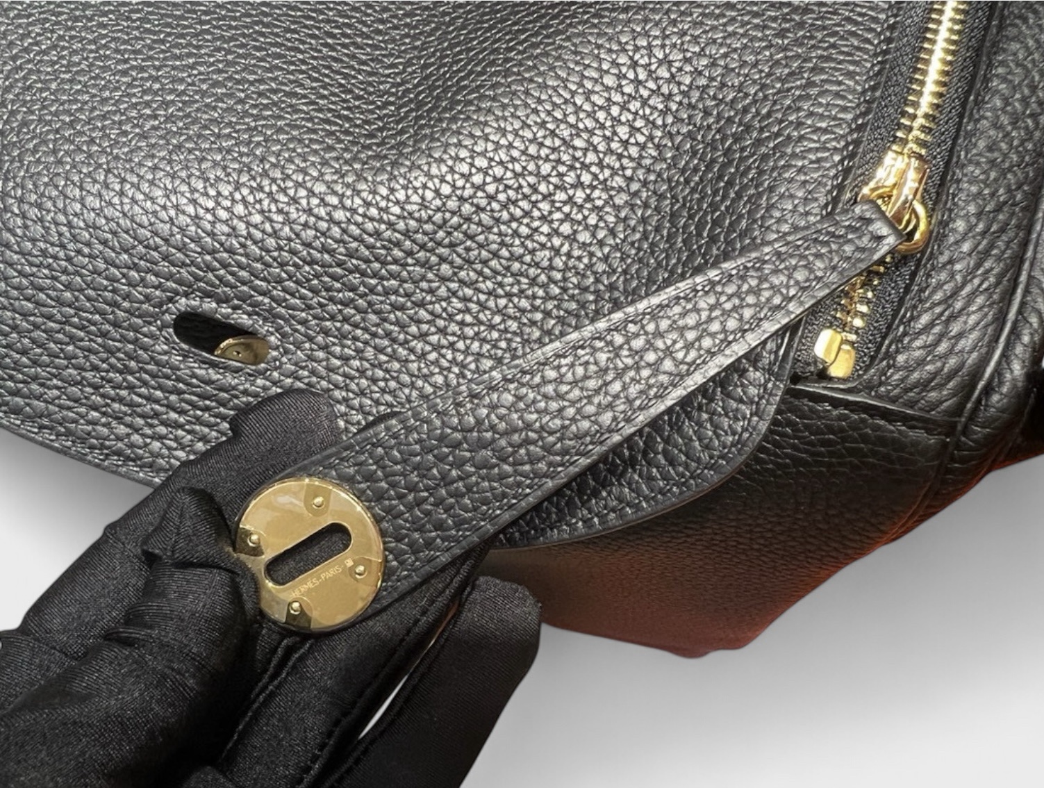 Home Women HERMES Lindy 30cm Clemence Leather 89 Noir Black