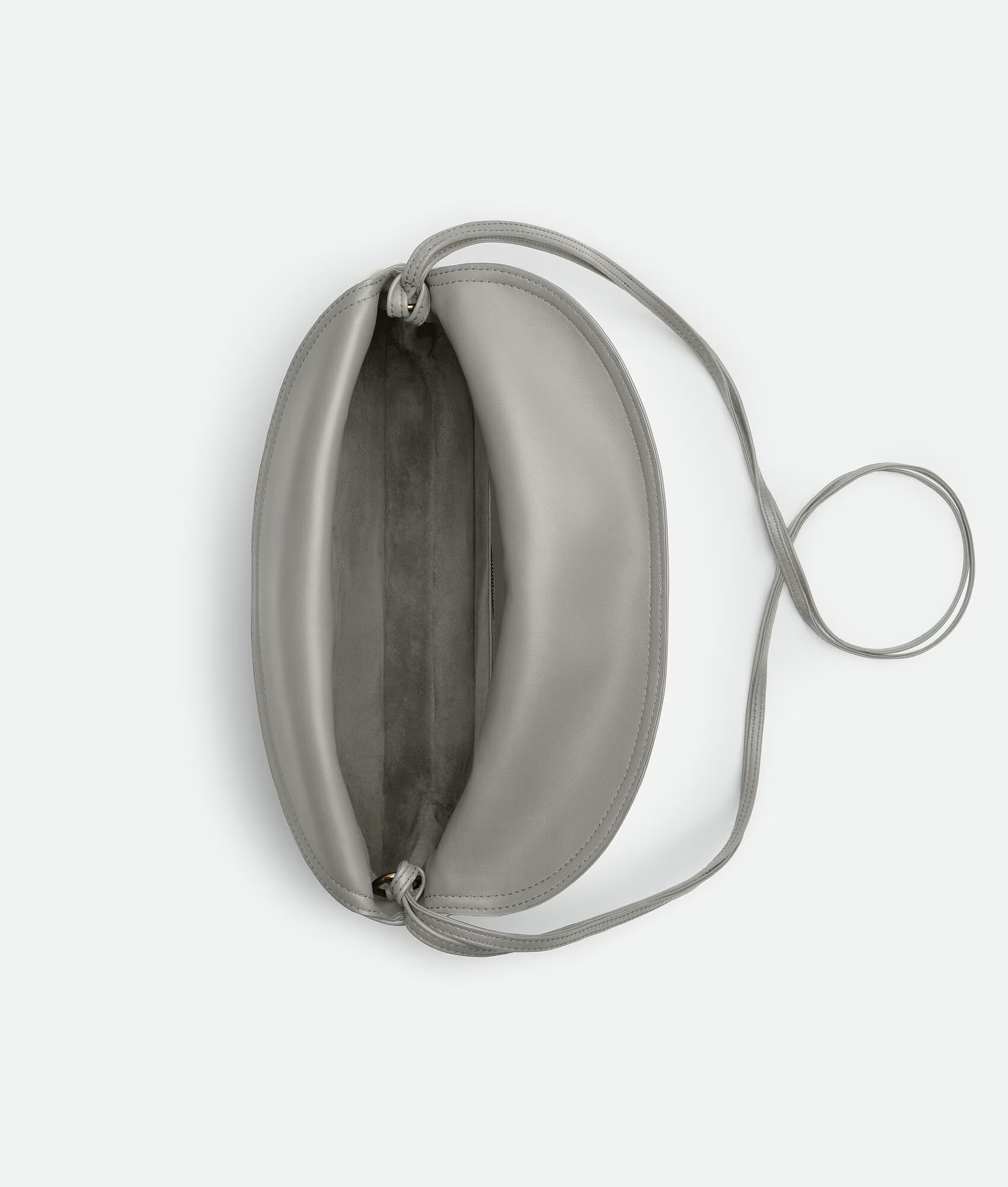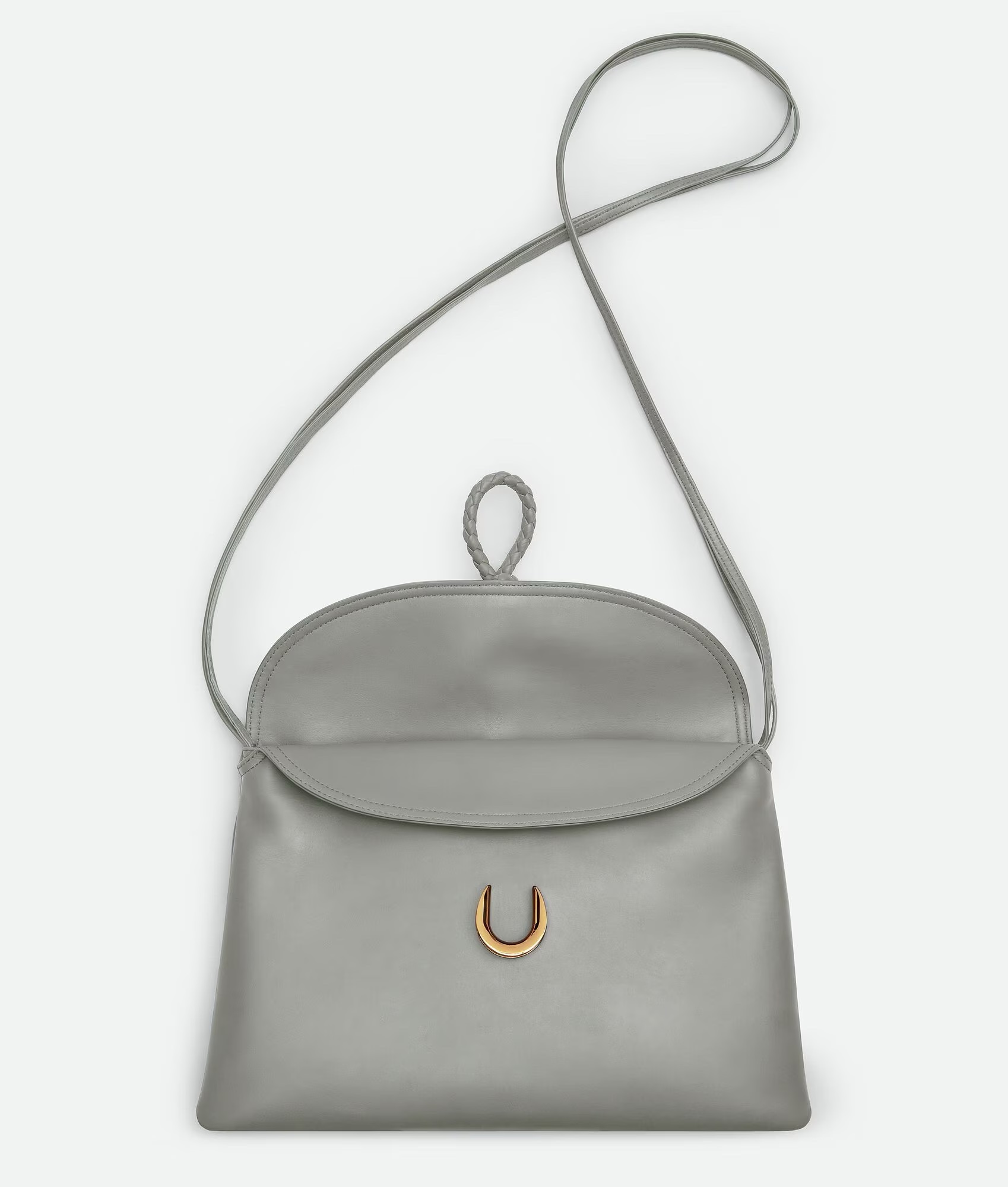 Cross-body bag in smooth calf leather with double flap. Fastened with a sculptural